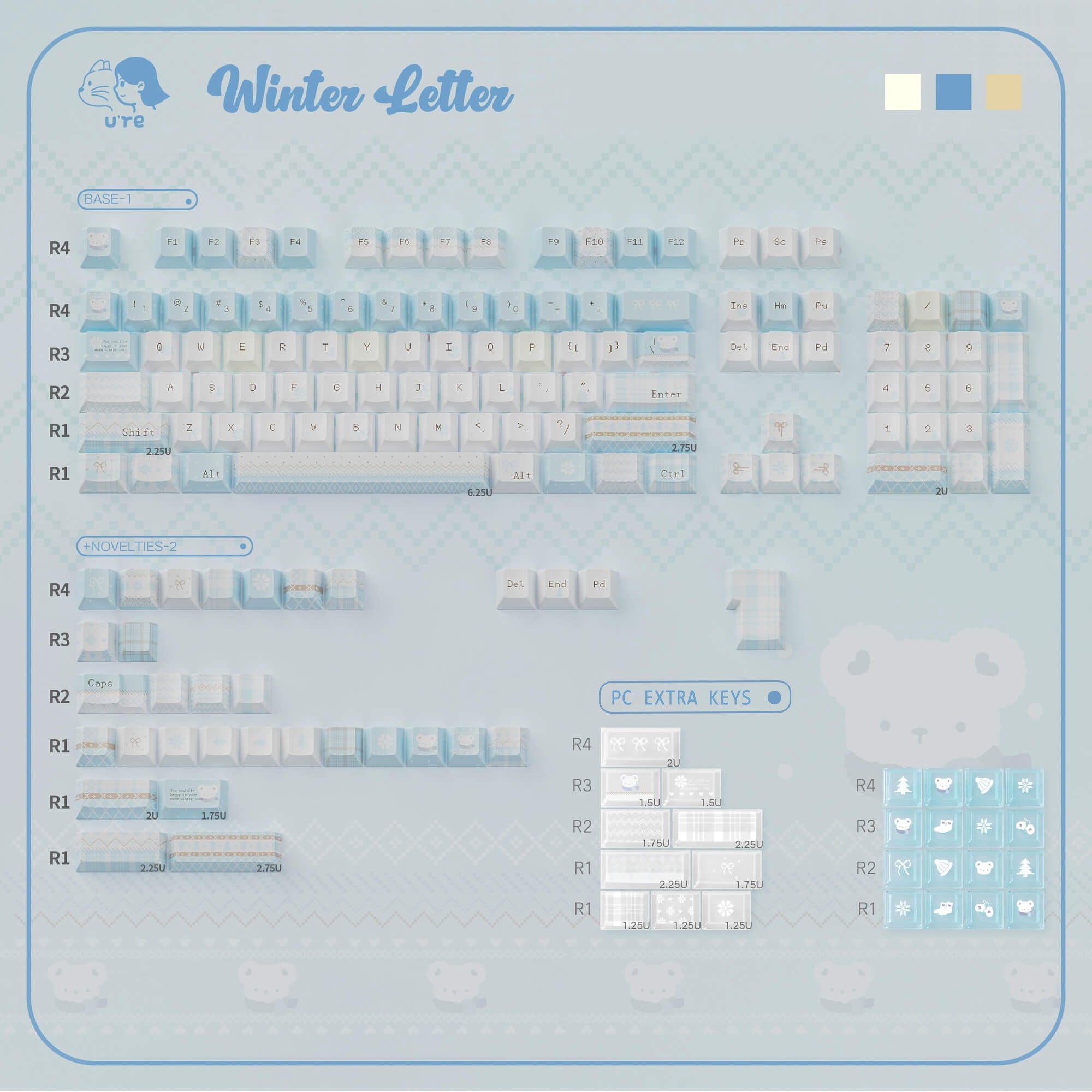 U're Lab Winter Letter Theme Keycaps (All Set, Cherry/MOA/KDA Profile, Dye-Sub, PBT+PC)