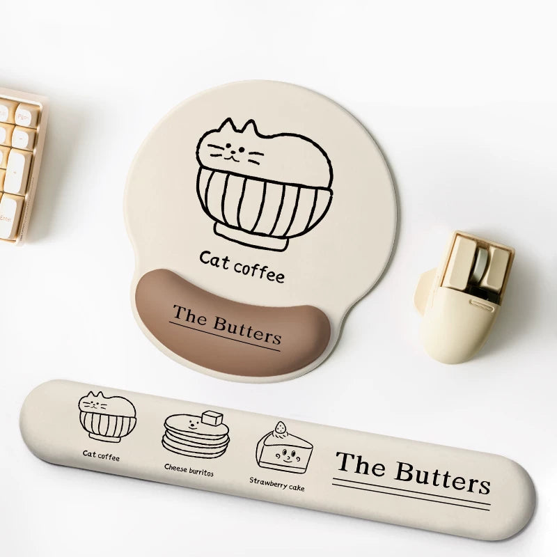 Cat Coffee Style Mouse PAD & Keyboard Wristrest